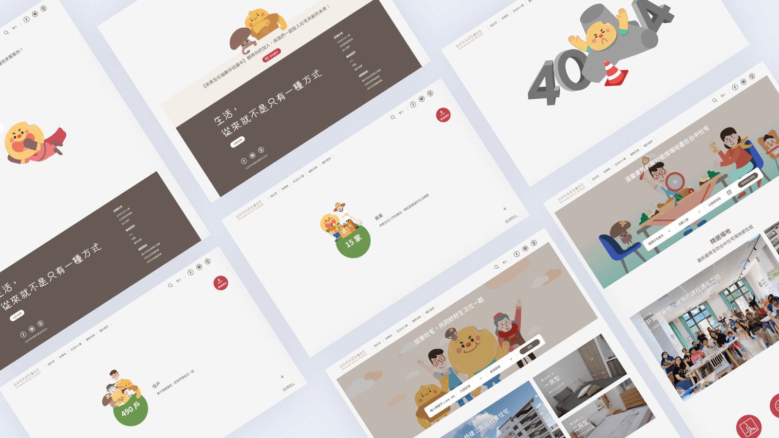 遊石在建立網站時為了臺中社宅品牌更一致的形象連結,在設計中將臺中社宅共好宅仔角色帶入數位服務中,讓象徵市府團隊與住戶等角色,用生活化的方式與民眾對話。透過具備情感溫度的IP 角色,除了作為與民眾溝通的管道,快速有效地傳遞資訊,同時也豐富了網站的顏色基調,擴大產品情感價值,也讓共好精神串連網站與網路社群等其他數位渠道,得以擴張與延續。