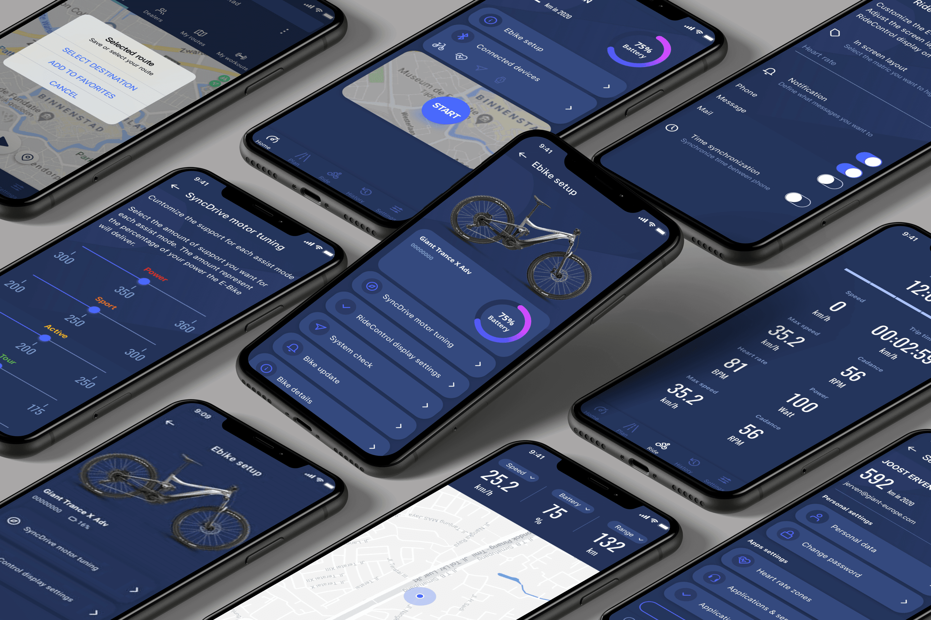 而在顏色選擇由Giant主打男性騎行市場的品牌以及Liv主打女性騎行市場的品牌色延伸,將品牌色提高亮度以因應在數位裝置上瀏覽的特性,讓品牌色能夠在APP瀏覽時看起來更亮眼、有活力。