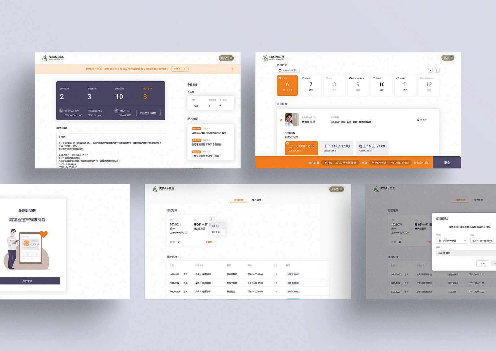 以品牌的五個核心理念:全人關懷、培力協作、多元包容、公平正義、喜悅健康為視覺設計發想,藉以強化設計目標概念。在視覺意象上除了傳遞醫療產業給人的親近、信賴、專業的形象外,也期望表達出掛號系統是一個溫暖而不失活力的數位工具。因此在介面的底紋上加增了聲波的造型,傳遞聲波有共振共鳴的波浪意象,讓介面有更多的視覺層次。並運用亮橘色與深藍色的介面色彩計畫,給人溫和正向,卻不失專業信賴視覺體驗。