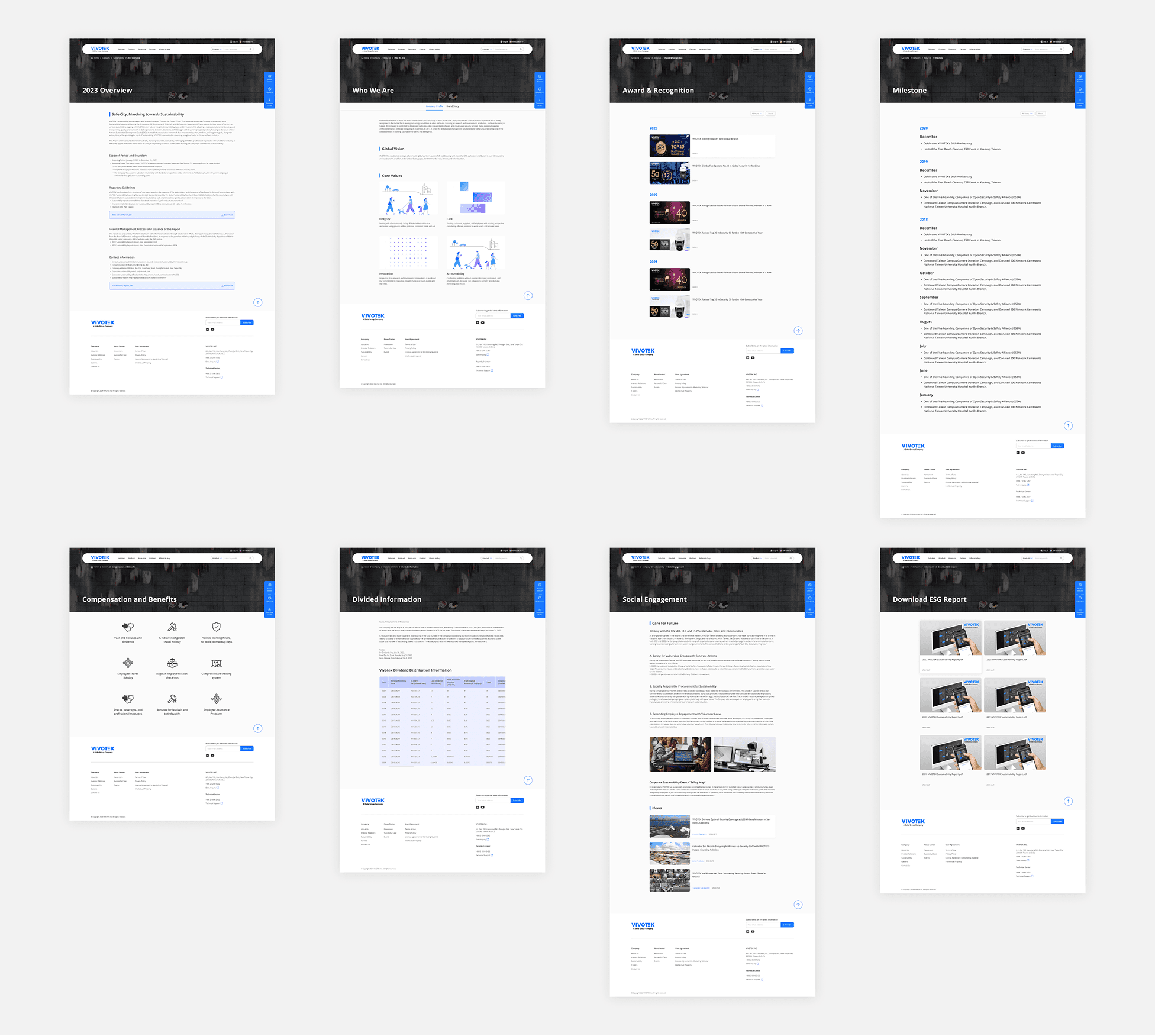 於 2000 年成立,以「物聯網的眼睛」為企業願景,目前已是全球知名智慧安防品牌的 Vivotek,也察覺到這樣的問題日趨嚴重,決定委託遊石團隊進行官網的版型整合、歸納與風格定義,就是希望能借重遊石在 UIUX 領域的專業,將官網重新梳理統整,並在原有內容與企業識別系統的基礎上,打造全新的風格樣式,讓官網變得煥然一新。